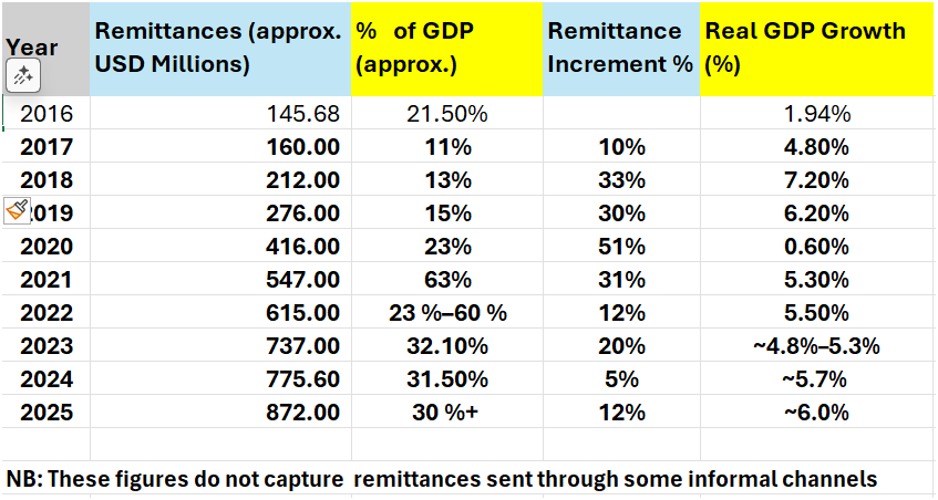 To those who understand figures, this table speaks volumes. To those unfamiliar, just compare the Real GDP growth rates versus the Remittance Increment rates year over year. Except for 2024, the remittance uptick far outpaces the real GDP growth of the economy in the NPP era. The significance? In a nutshell, without our remittances, there would have been ZERO real GDP growth since 2017.